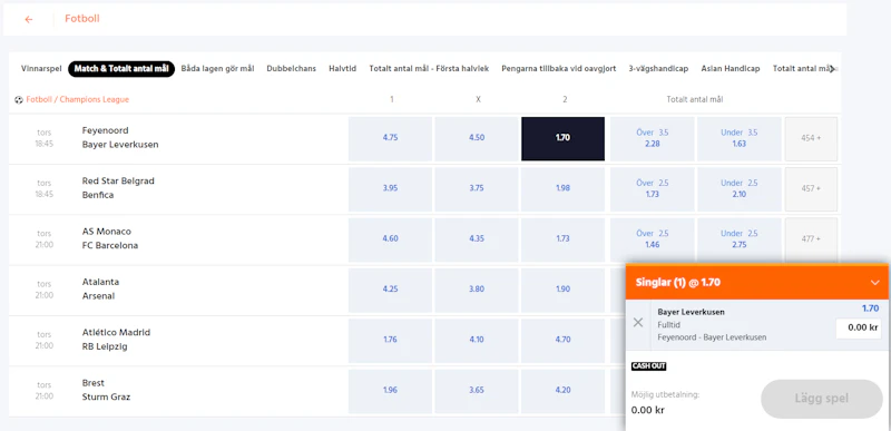 Idag, 2026, är det inte riktigt så längre på den svenska marknaden. De flesta stora bettingsidor använder sig av ett par dominerande oddsleverantörer som Kambi eller Altenar. Det betyder att utbudet av ligor, marknader och grundodds ofta känns ganska likartat hos många - samma stora sporter, samma bet builder-funktioner och liknande liveuppdateringar. Det är stabilt och hög kvalitet rakt igenom, men inte alltid superunikt.