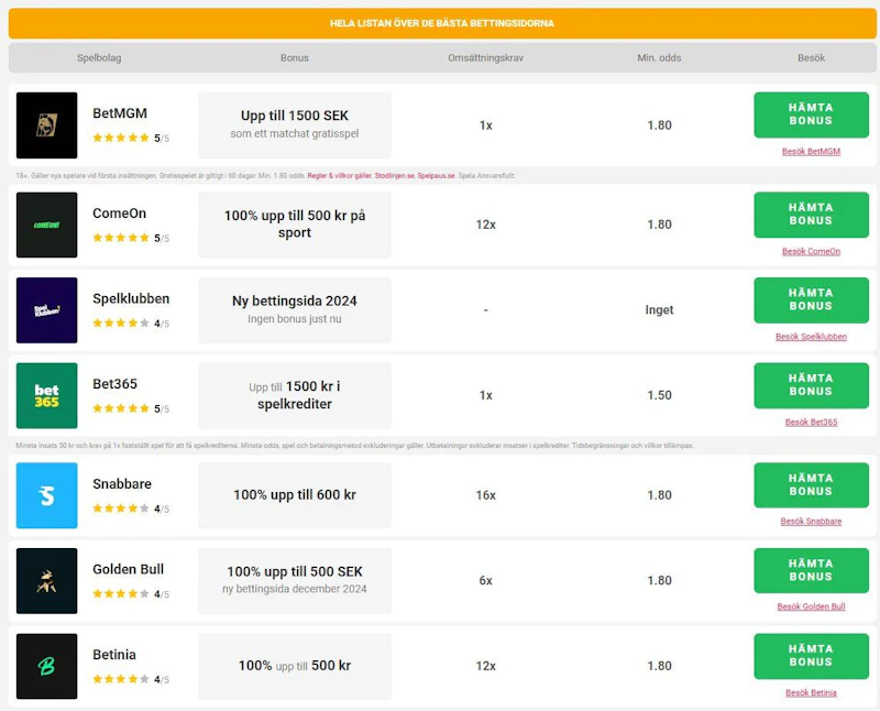 Alla bettingsidor i Sverige