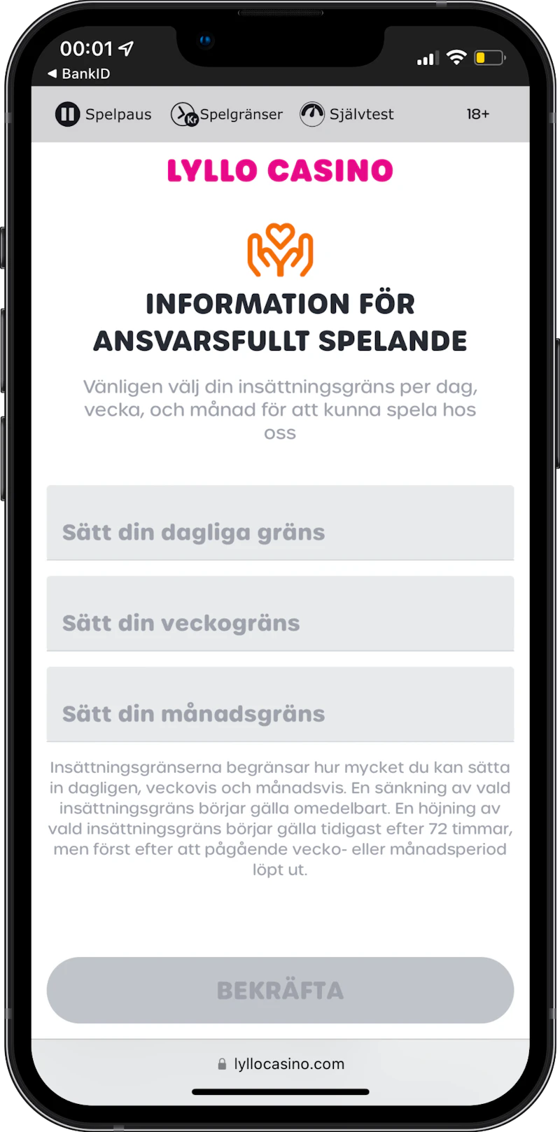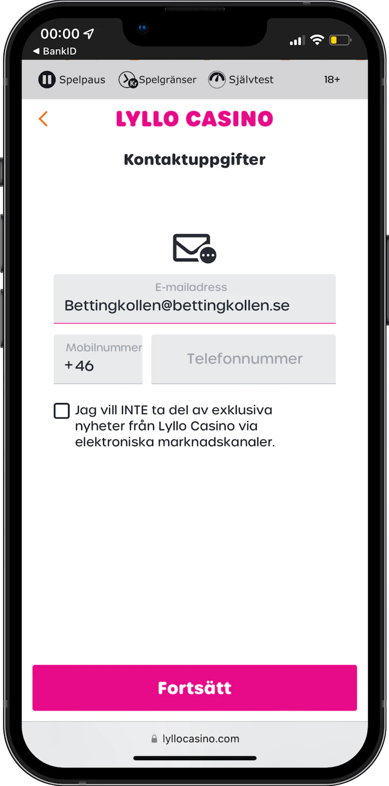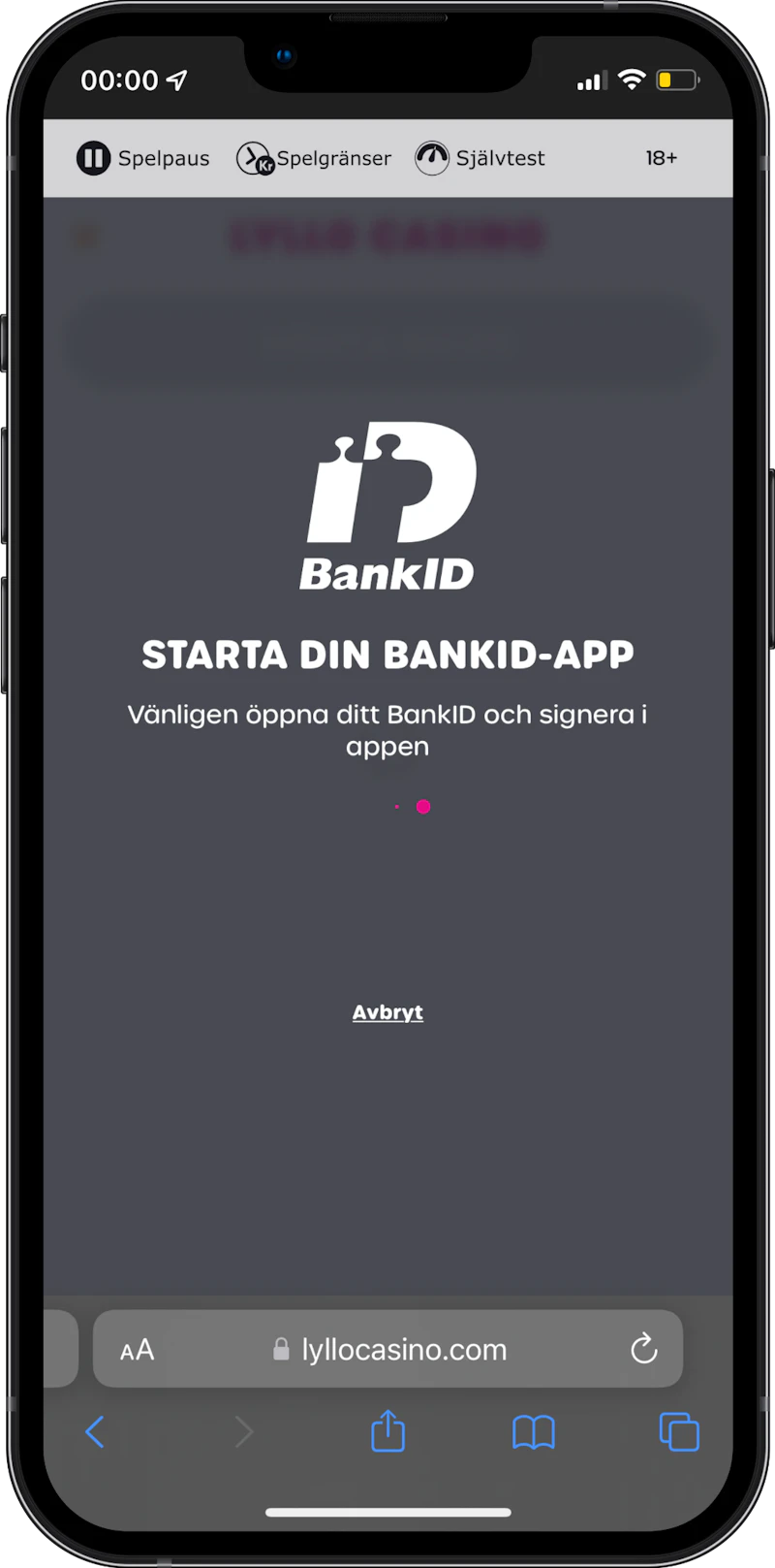 Har du BankID installerat på telefonen, startar appen automatiskt. Signera därmed att du vill bli kund hos Lyllo Casino hos BankID.