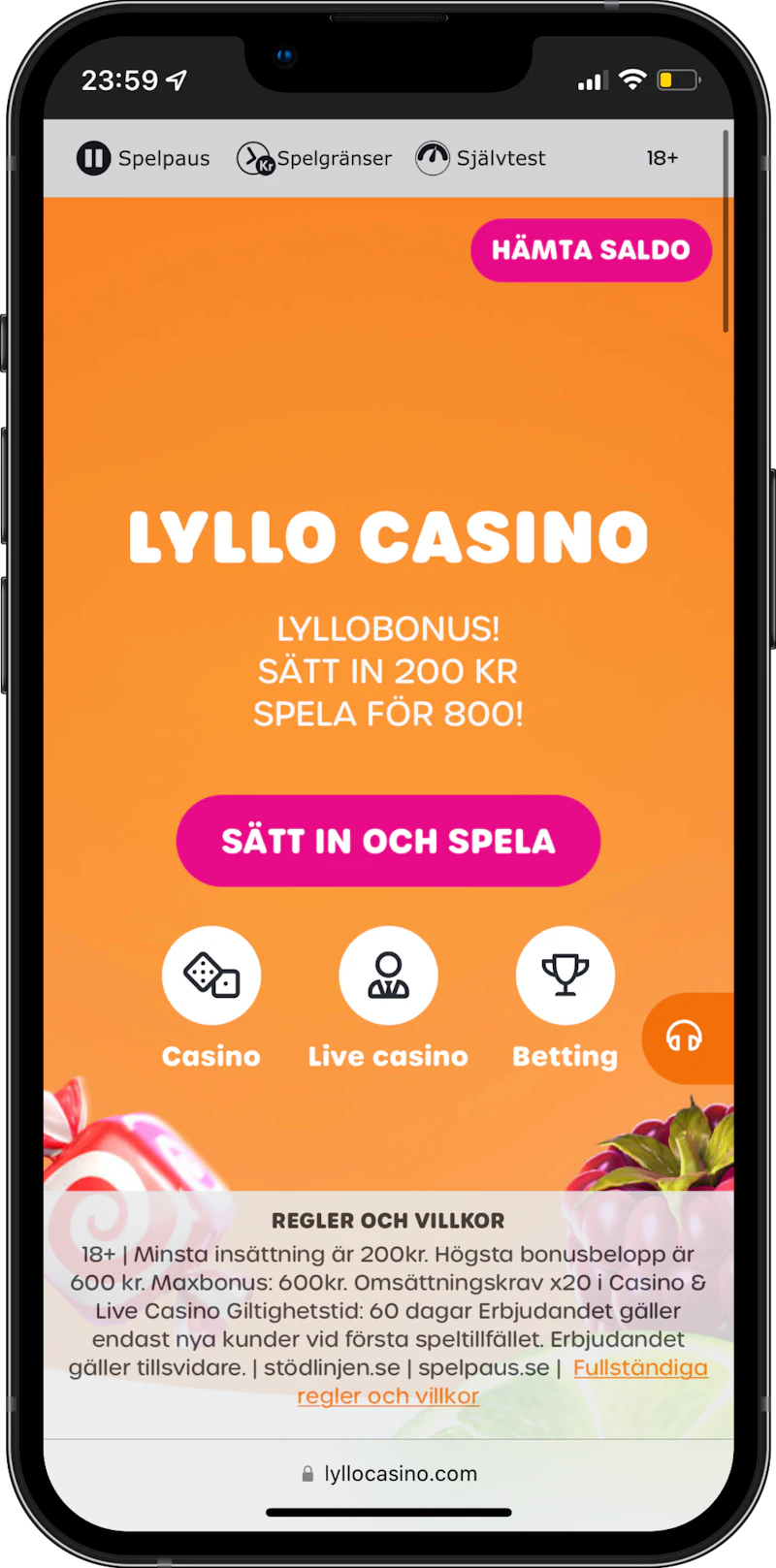 Fd Casinoautomaten heter numera Lyllo Casino, och tro mig, Lyllo erbjuder inte bara casinospel. Spelbolaget har en välfungerade sportbok där SbTech står för oddsen. Hemsidan är mobilanpassad och fungerar bäst i telefonen, men för dig som använder datorn är den väldigt enkel, vilket gör det rätt lätt att navigera runt. Det rosa temat sticker ut bland övriga spelbolag och är uppfriskande.
